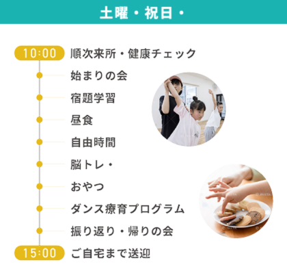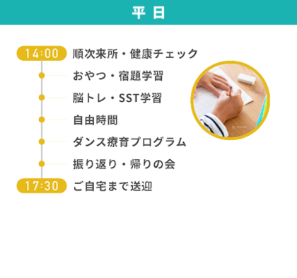 ※ 一日の流れは基本的な一例です。利用児の体調や、利用時間、スタッフの人数等に合わせ都度変化します。